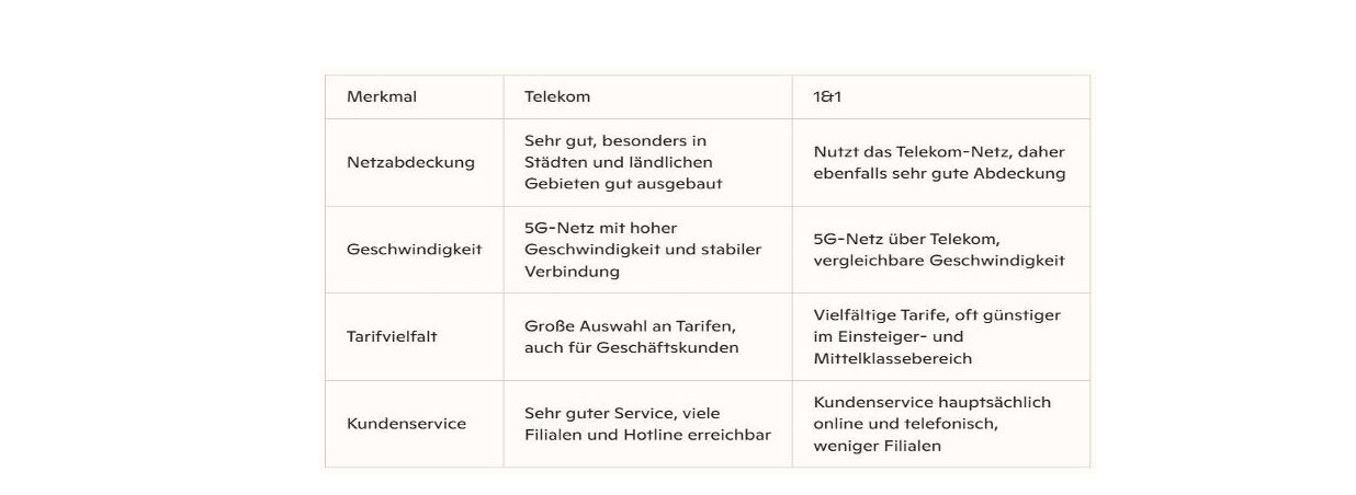 Die Wahl zwischen Telekom und 1&1 hängt von den individuellen Bedürfnissen ab: Wer Wert auf persönlichen Service und direkte Beratung legt, ist bei der Telekom gut aufgehoben. Wer vor allem auf den Preis und flexible Tarife achtet, findet bei 1&1 oft attraktive Angebote mit vergleichbarer Netzqualität.